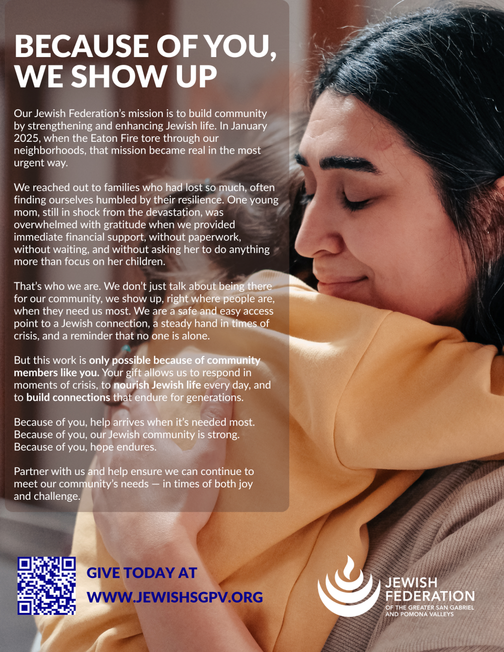 The Jewish Federation of the Greater San Gabriel and Pomona Valleys is the starting point and the support system for your local Jewish journey.