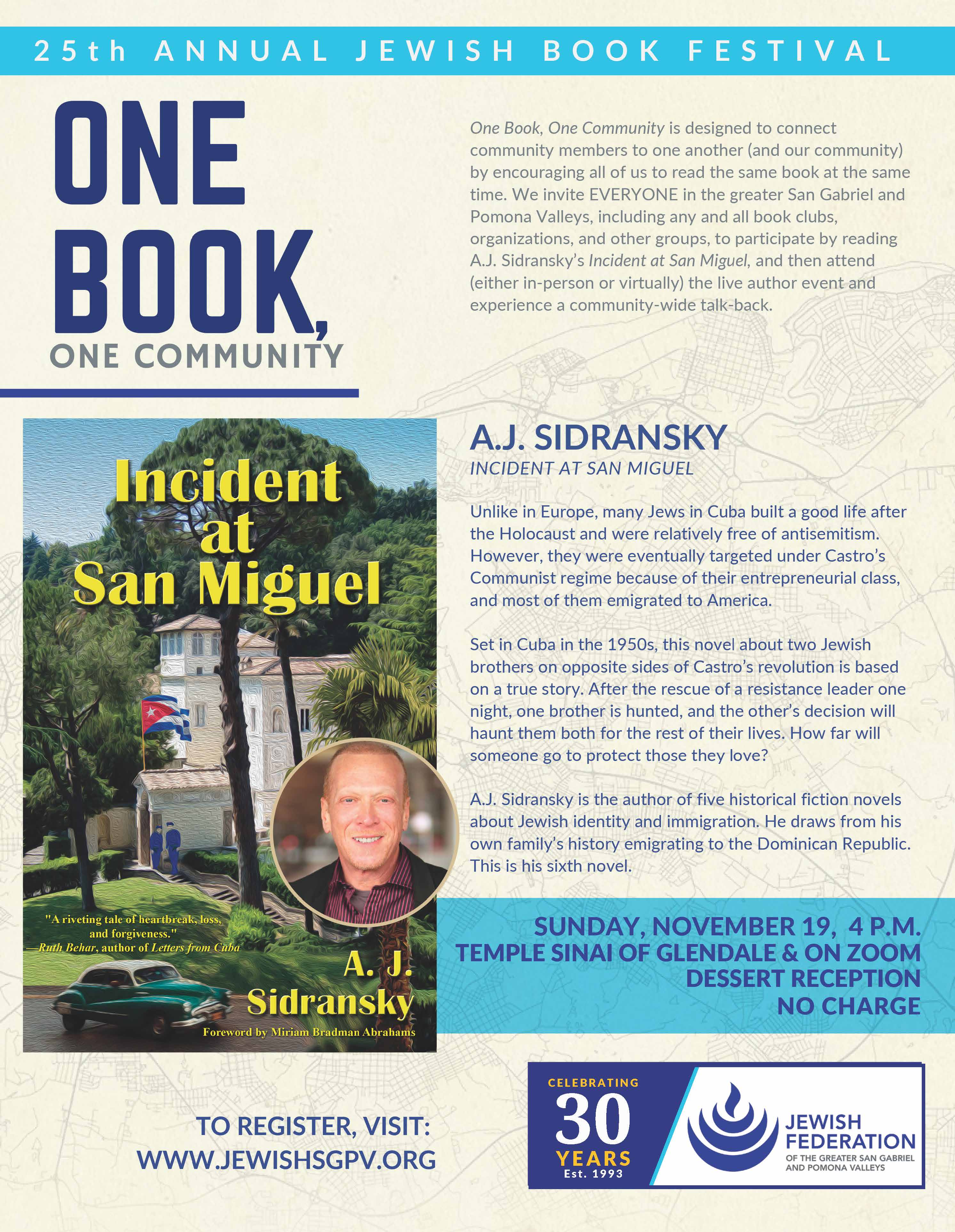 A.J. Sidransky is the author of five historical fiction novels about Jewish identity and immigration. He draws from his own family’s history emigrating to the Dominican Republic. This is his sixth novel.