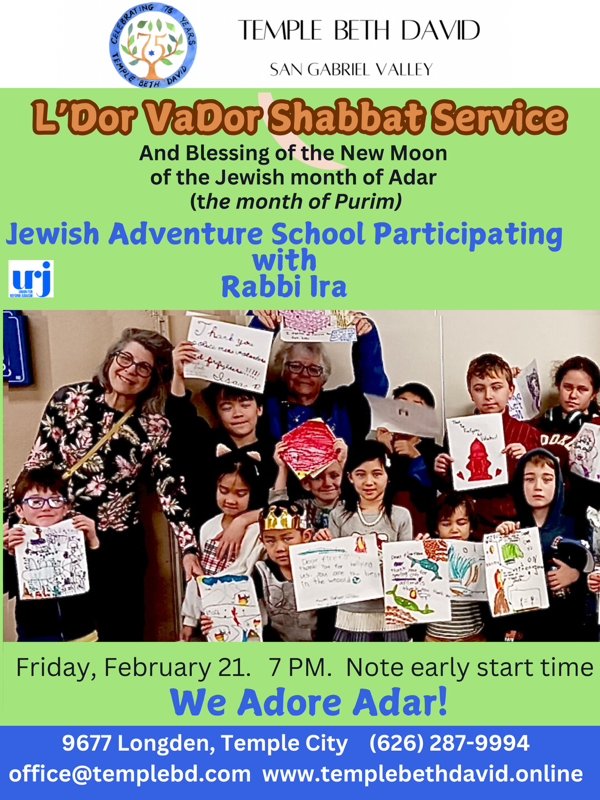Join us on February 21, 2025 at 7:00PM for L'Dor VaDor Shabbat Service