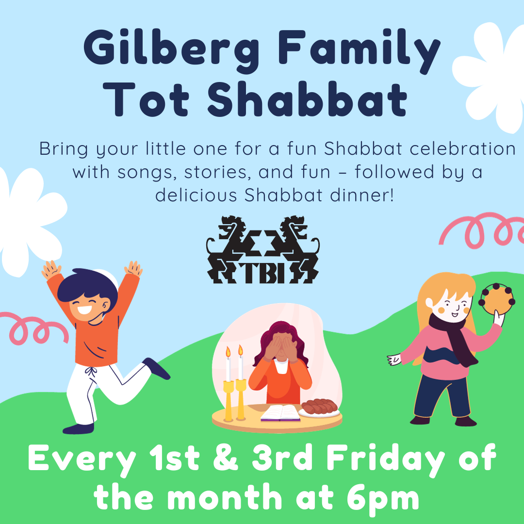 Grab your little one (0-6) and come on by TBI! We welcome Shabbat with songs, stories, and lots of Shabbat fun!