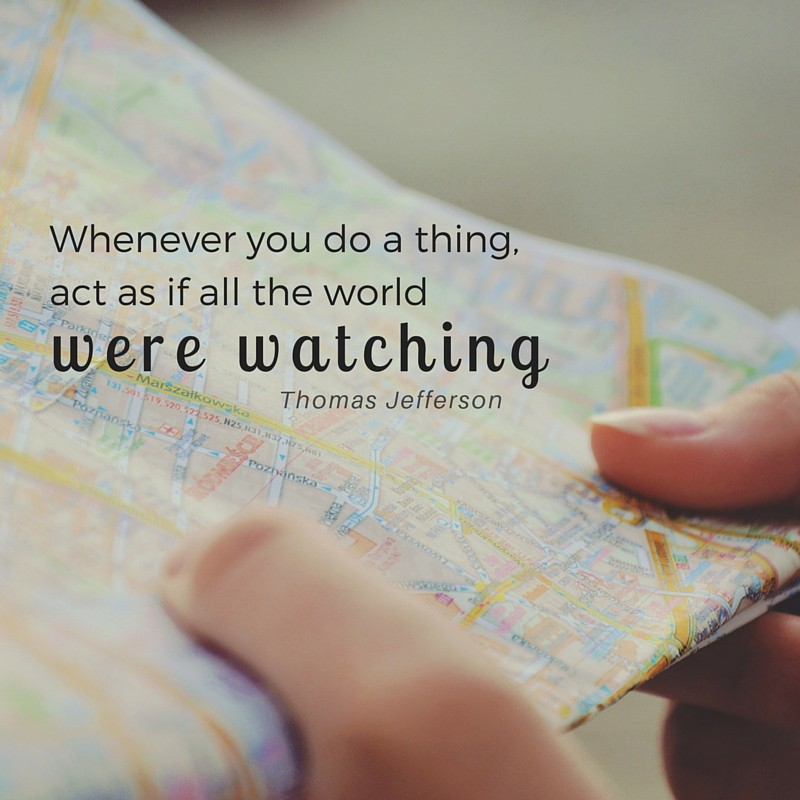 The true character of a person is not how they act when people are watching, but rather how they act when people are not watching. Do they always do what is right, or do they act that way only when people are watching? Maybe we need to heed the words of Thomas Jefferson who wrote, “Whenever you do a thing, act as if all the world were watching.” I mean, after all, don’t we tend to be on our best behavior when we know that we are being observed?