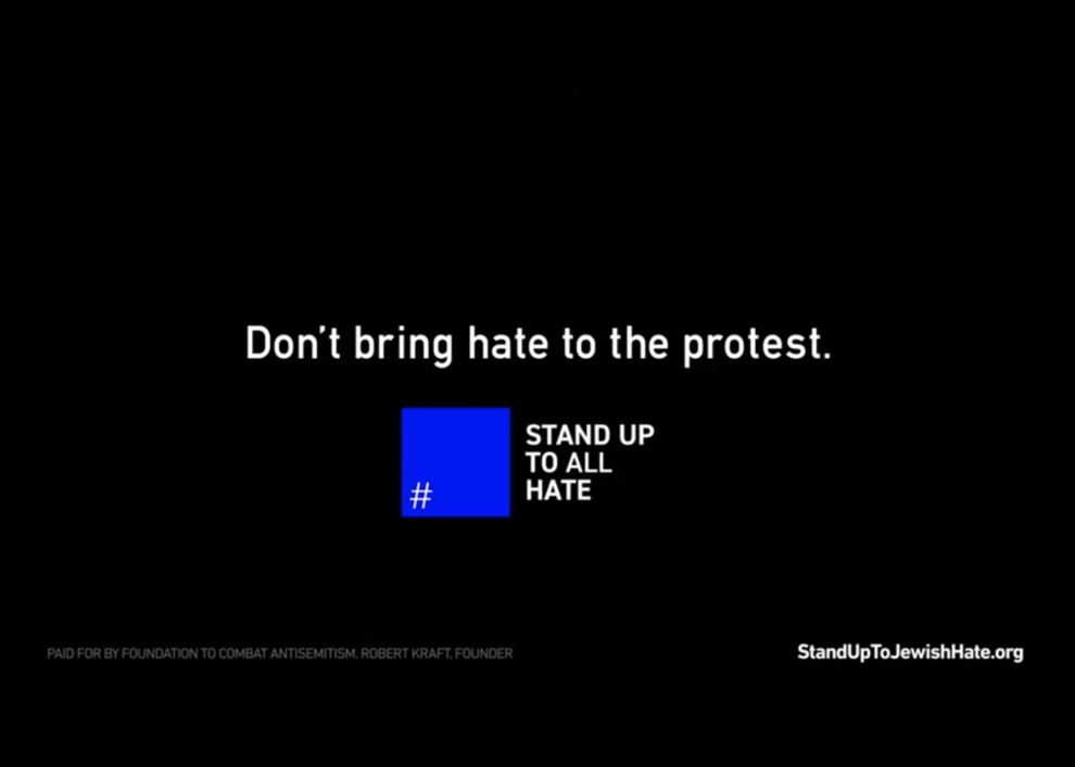With this in mind, I wanted to bring to your attention a nationwide effort about to hit your TVs and social media feeds. Over the next several days, during two NBA playoff games, Robert Kraft, the owner of the New England Patriots and founder of the Foundation to Combating Antisemitism (the organization that started the #BlueSquare campaign last year), will run this brand new commercial that I encourage you to watch and share.