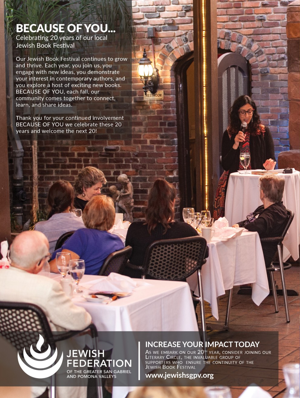 Our Jewish Book Festival continues to grow and thrive. Each year, you join us, you engage with new ideas, you demonstrate your interest in contemporary authors, and you explore a host of exciting new books. Because of you, each fall, our community comes together to connect, learn, and share ideas.