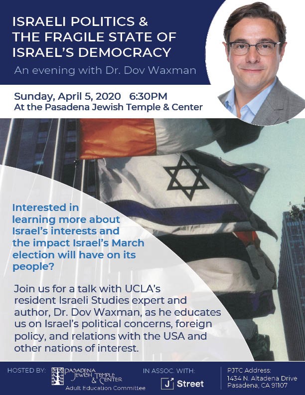 Join us for a talk with UCLA’s resident Israeli Studies expert and author, Dr. Dov Waxman, as he educates us on Israel’s political concerns, foreign policy, and relations with the USA and other nations of interest.