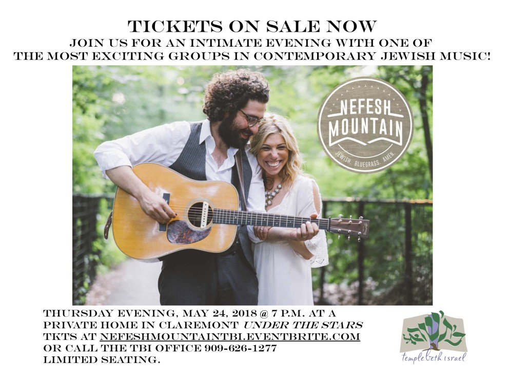 TBI is excited to present Nefesh Mountain, one of the hottest groups on the contemporary Jewish music scene and more broadly, one of the most exciting newcomers to the contemporary Bluegrass and Americana music scene nationwide. Join us in the intimate venue of a backyard in a local home, under the stars, to experience this unique event. Tickets at http://nefeshmountaintbi.eventbrite.com. To hear/see Nefesh Mountain online, go to http://nefeshmountain.com.