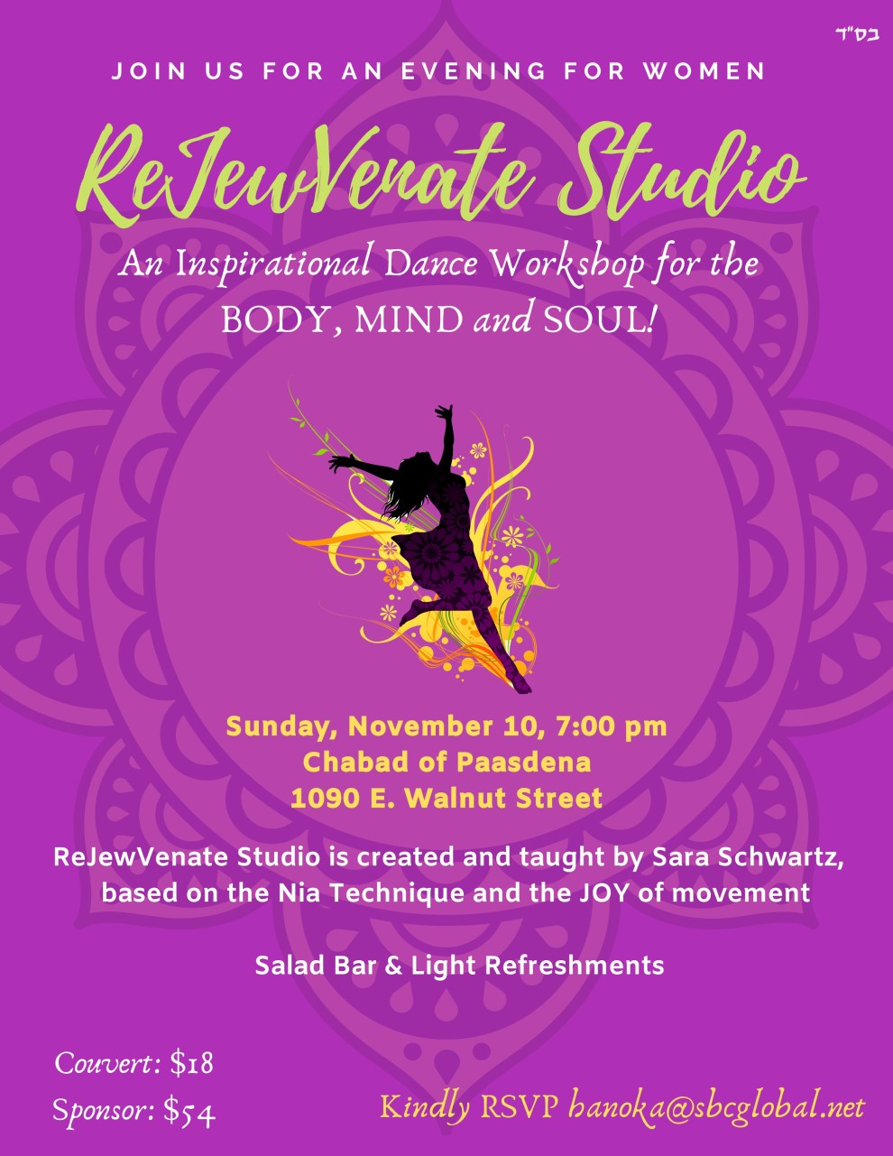 ReJewVenate Studio is created and taught by Sara Schwartz, based on the Nia Technique and the JOY of movement.