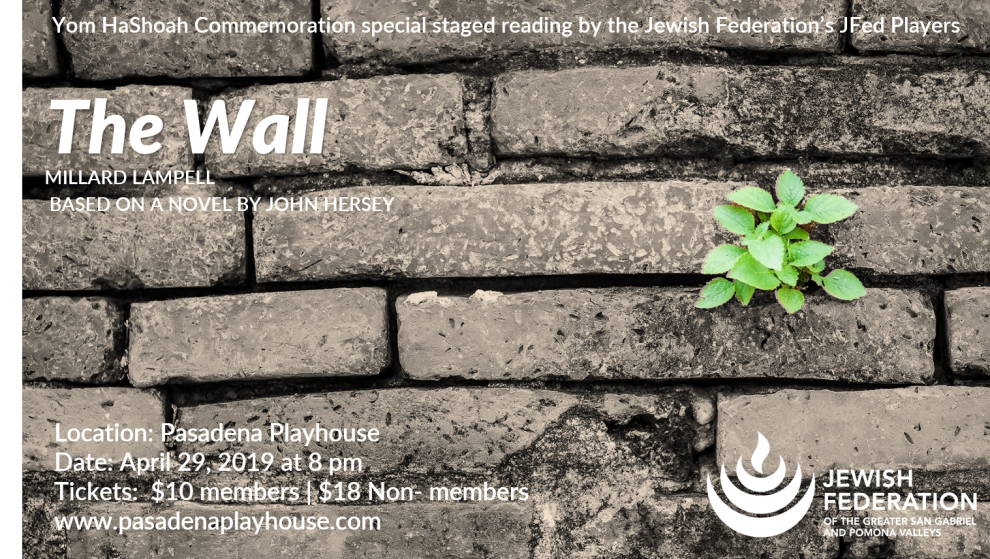 This play will be read by actors of the Jewish Federation’s JFed Players and is being performed in partnership with the National Jewish Theater Foundation Remembrance Readings.