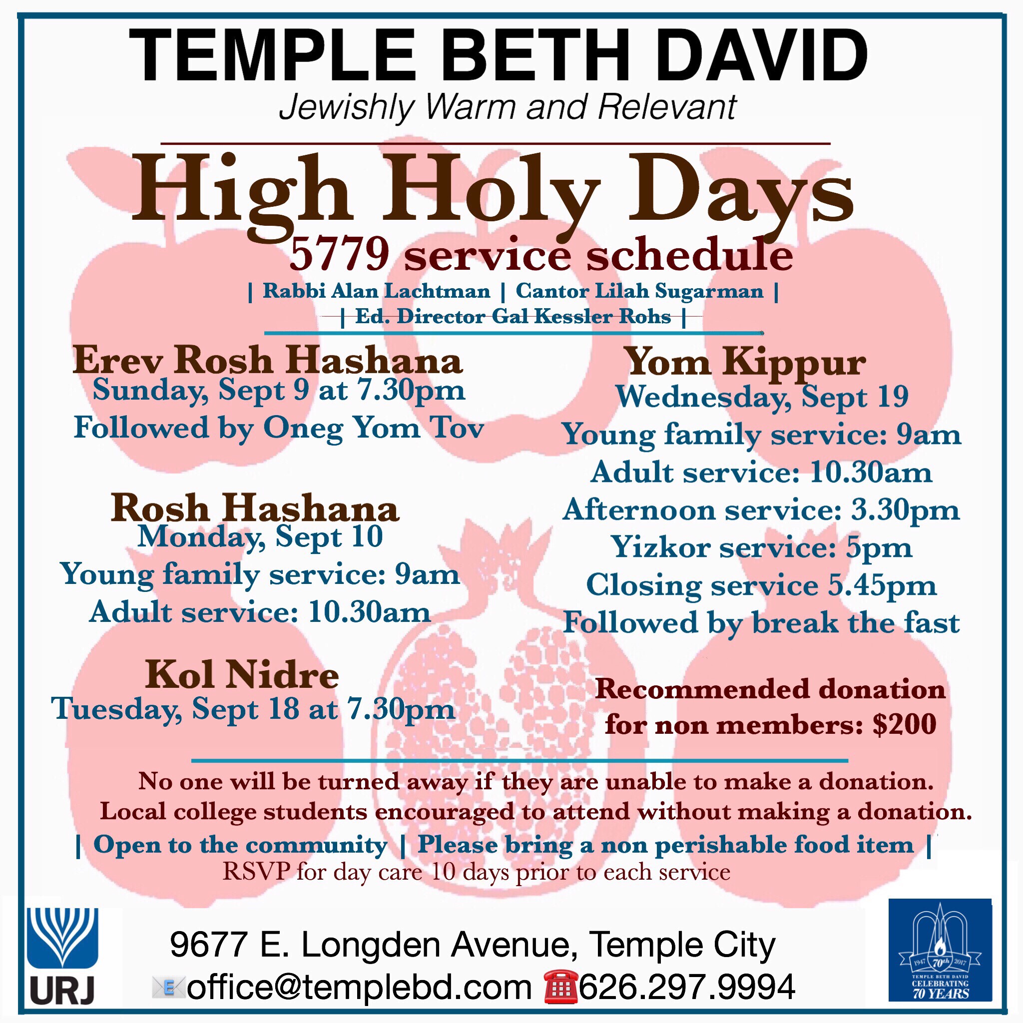 Yom Kippur Yizkor Service at Temple Beth David of the San Gabriel Valley. Open to the community.